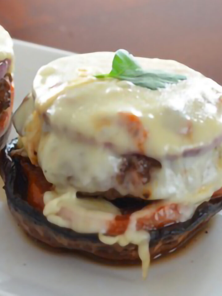 Mozzarella, Red Pesto and Red Onion Topped Burgers