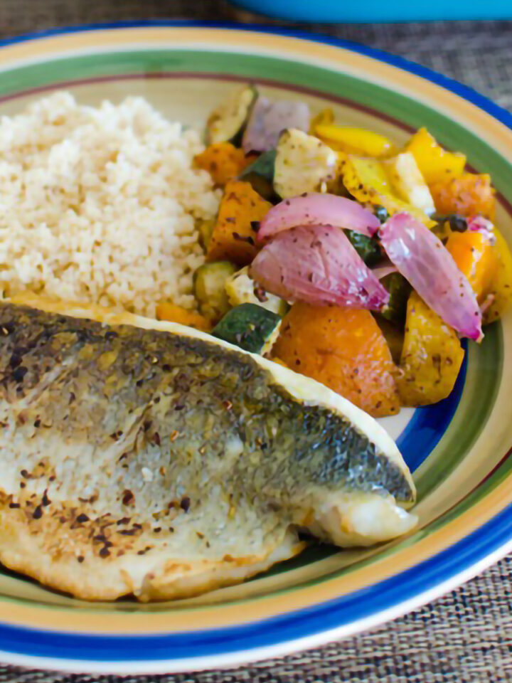 Pan-Fried Sea Bass with Sumac Roasted Vegetables