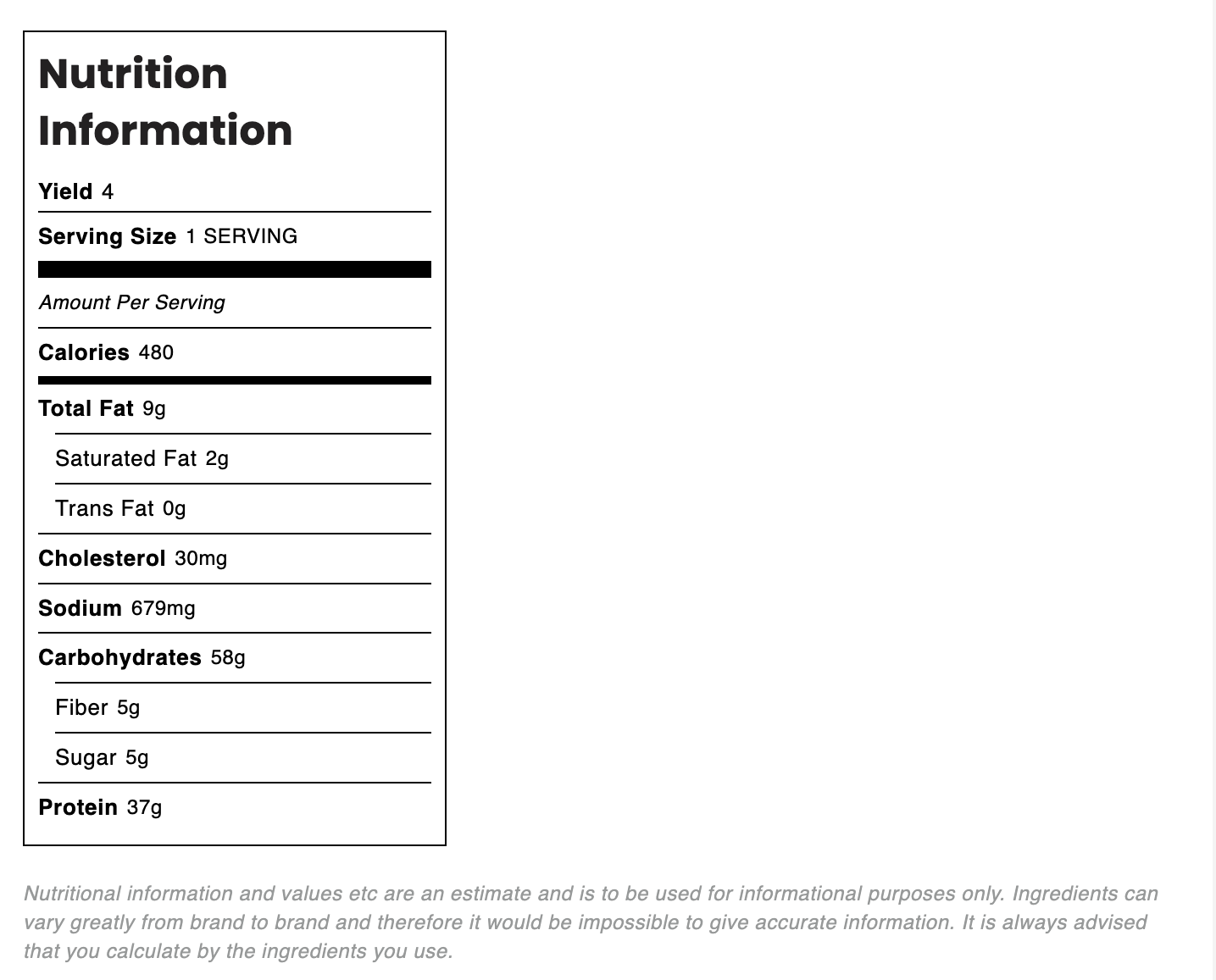 All recipes have a nutritional info label at the bottom of the recipe box to help you on your healthy eating plan.