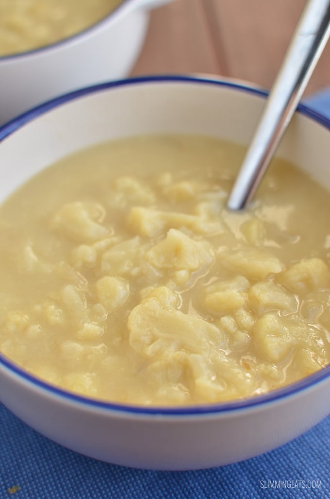 As one of the main ingredients in this soup is cauliflower, it is also a great dish for speed foods. As cauliflower is one of the many speed vegetables on Slimming Eats (There are some vegetables that are not and those are the starchy ones like parsnips, plantain, sweetcorn, peas etc). Serve this Cauliflower Cheese Soup just as it is, or bulk it up into a meal.
